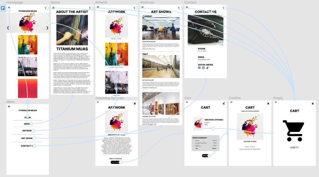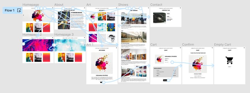 The first thing that I did was research other artists’ websites to see what was working and what wasn’t working well on their websites. Then I brought this information back; the things that were working well were noted down so that I can utilize them in my designs in the future. For the things that weren’t working well, I brainstormed solutions to those things so that I can implement them into my designs.